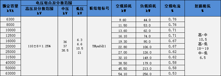 110kV級 11型三相三繞組有載調(diào)壓電力變壓器